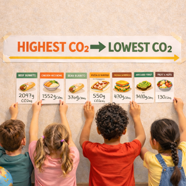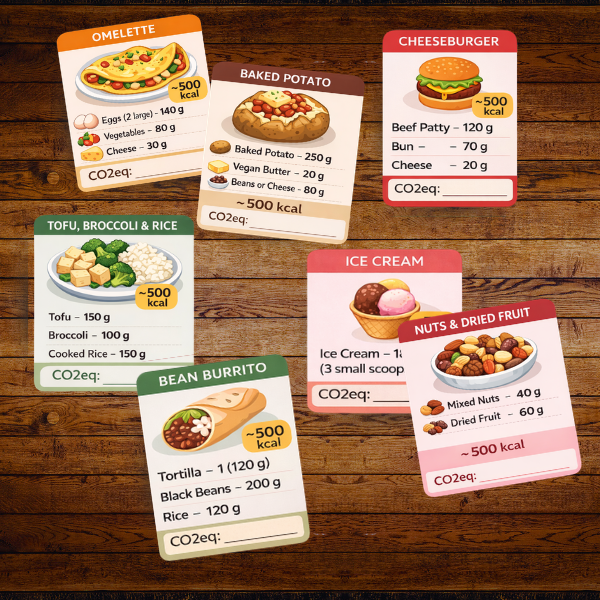 Calculate the environmental impact of various meals using a CO₂ calculator, rank the meals, and gamify the creation of the most eco-friendly meal.