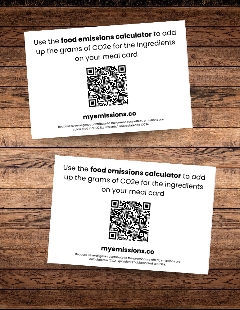 For hosting group activities, this flyer helps participants instantly connect to the My Emissions food calculator.