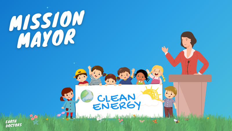 Students meet their local mayor to read their letters for green ideas and experience the process of civic advocacy.