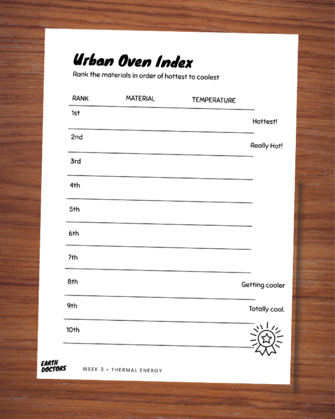 In Week 4, we discover why cities warm up by exploring different materials with a FLIR thermal camera and thermal color-changing stickers.